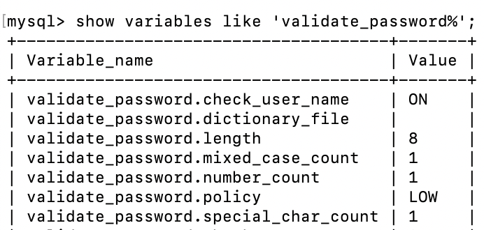 show variables like 'validate_password%';