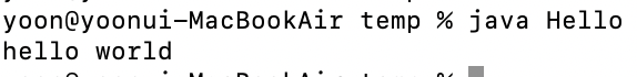 2. 터미널 창에서, Hello.java 소스파일을 컴파일한다