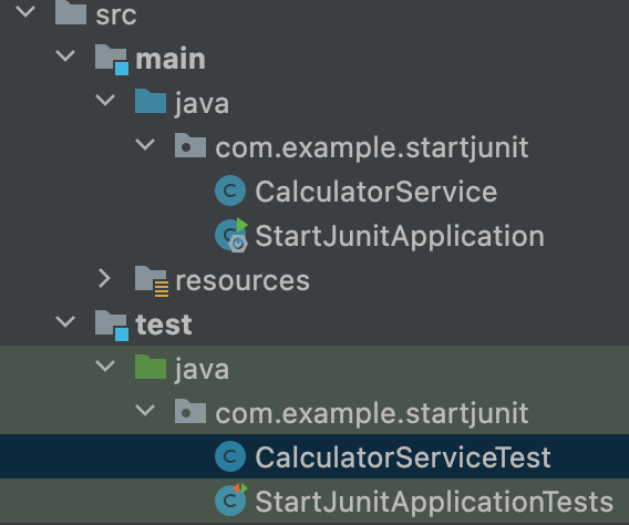 - src->test->'동일한 클래스패스'에 테스트 클래스를 만든다