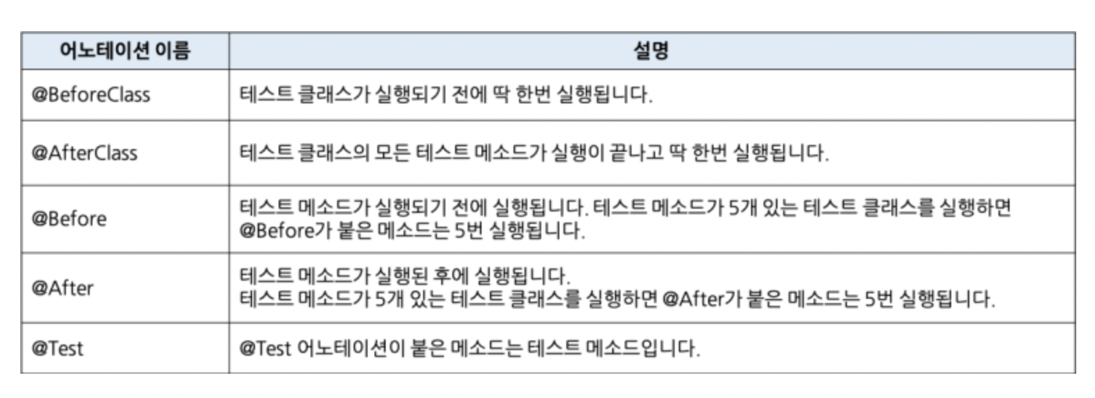(참고로 JUnit4 기준이므로, 검색해보면서 사용하자)