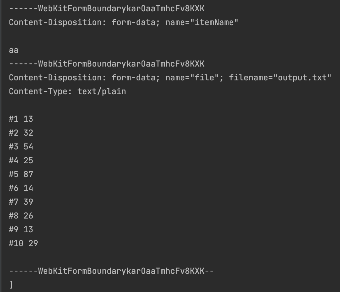 실제로 request.getParts()를 출력해보면, 아래와 같이 나온다.