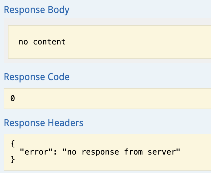 위와 같은 코드로 실행해보았는데, swagger에서는 아래와 같이 응답 결과가 반환되지 않았다.